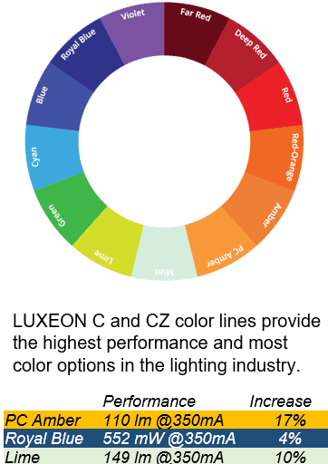 17% Flux Boost in Key Colors for LUXEON C and CZ Color Lines