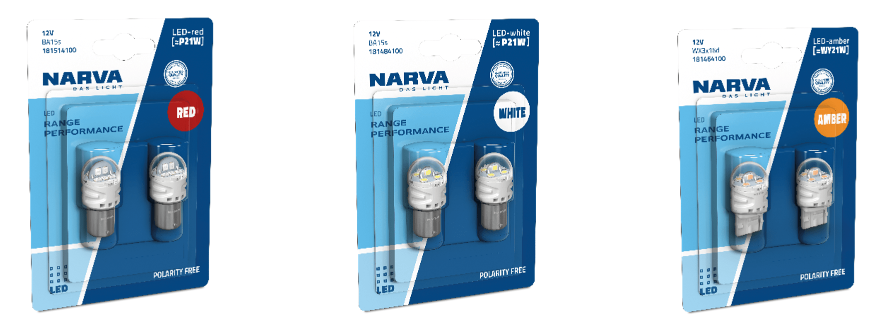 Suresnes, France – March 8th, 2023 –The new NARVA Range Performance LED signaling bulbs offer superior performance at a pocket-friendly price. Available in stylish white, red, and amber, they are compatible with many car models and are easy to install.