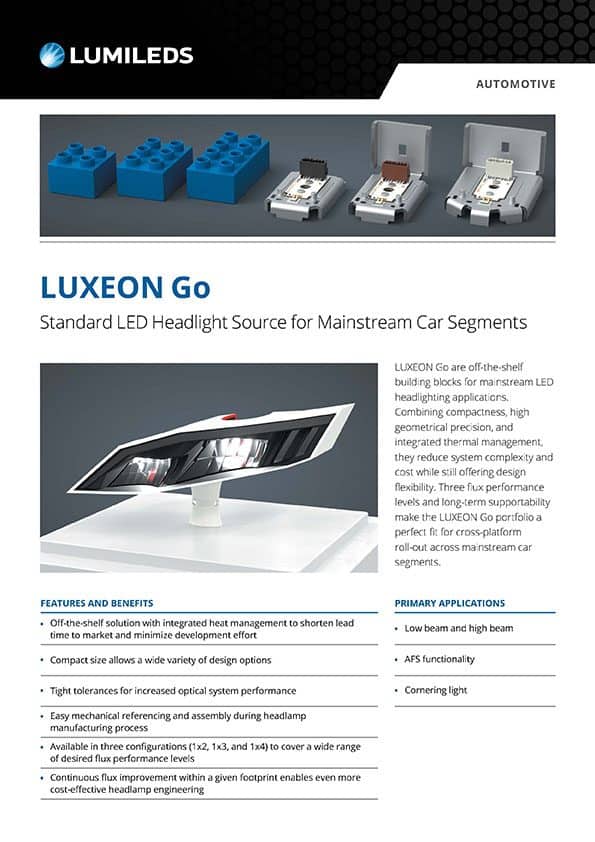 LUXEON GoStandard LED module with heat-sink for headlighting applications with small size, excellent thermals and precision alignments for optics.