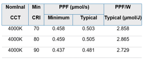 The new horticulture LEDs are engineered for robust sulfur protection – critical for long and stable lifetime in warm and humid environments – and are specified for horticulture at 65mA and Tj= 25°C with CCTs from 2200K to 6500K and CRI of 70, 80 or 90. When matched with LUXEON Deep Red and Far Red options a complete horticulture illumination solution is at hand.