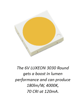 Lumileds boosts LUXEON 3030 2D Round performance for leading flux, efficacy, and drive current.