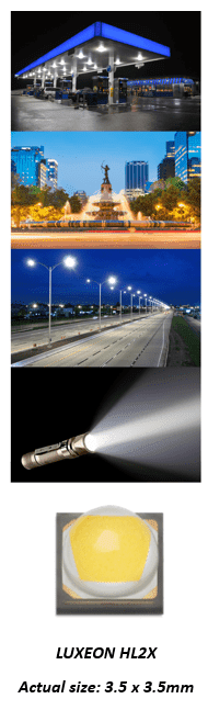 The high-power LUXEON HL2X LED portfolio provides higher light output, superior lifetime and color stability.