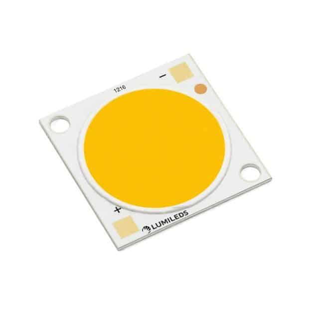 The LUXEON CoB 1216 is offered in the industry’s widest range of color temperatures (2200K to 5700K) and CRIs (70, 80 and 90). 100% of LUXEON CoB Core Range (Gen 2) arrays are hot tested at 85°C to ensure performance in real world operating conditions and to minimize additional testing. A low thermal resistance substrate minimizes heat sink needs.