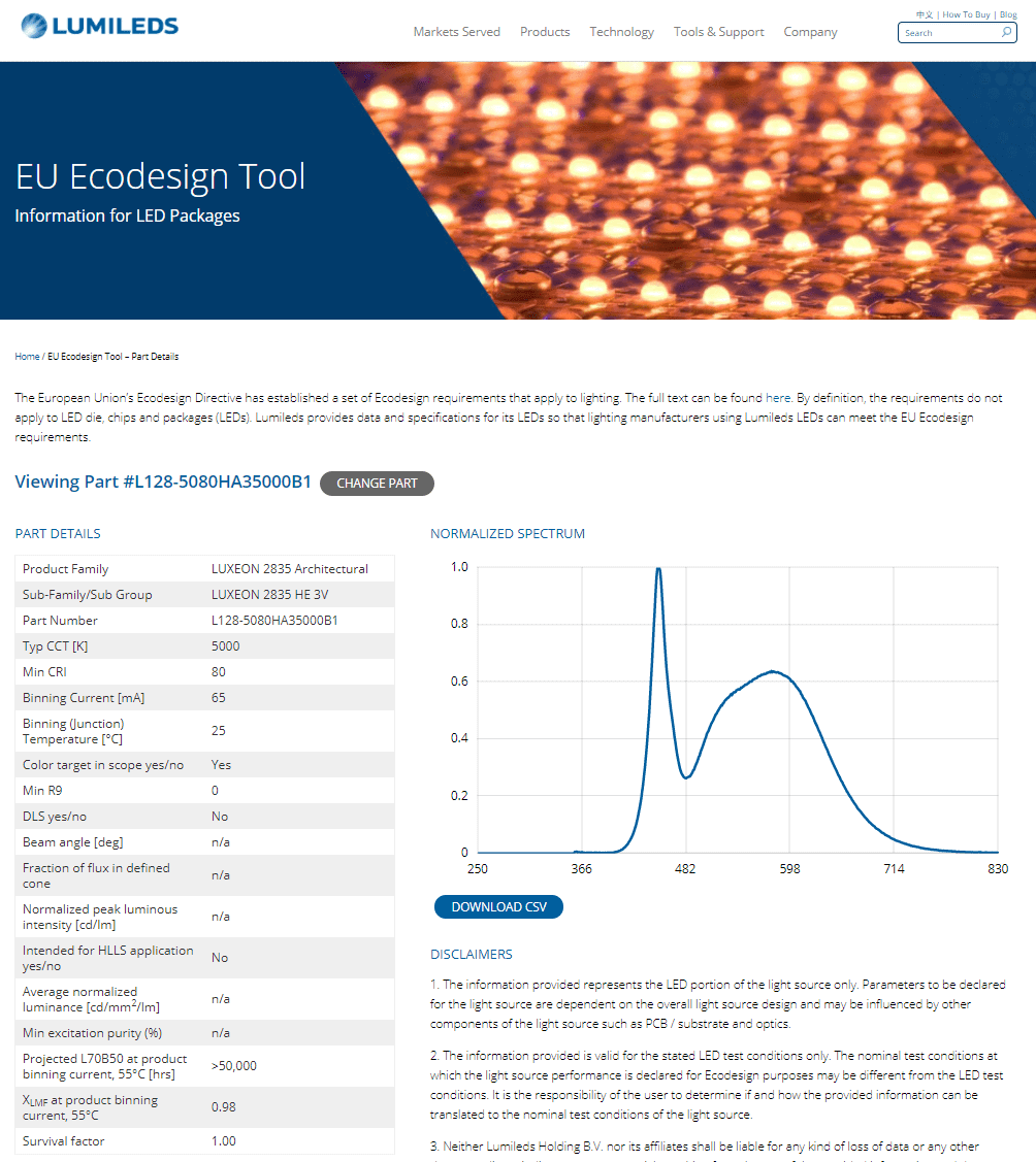 San Jose, CA – July 21, 2021 Lumileds has introduced a first-of-its-kind web-based tool – the EU Ecodesign Tool – that provides detailed LED performance data lighting manufacturers need in order to comply with the European Union’s Ecodesign Directive. LUXEON LED users can view the data and a normalized spectrum on screen or choose to download a .csv file containing the same data seen on-screen.