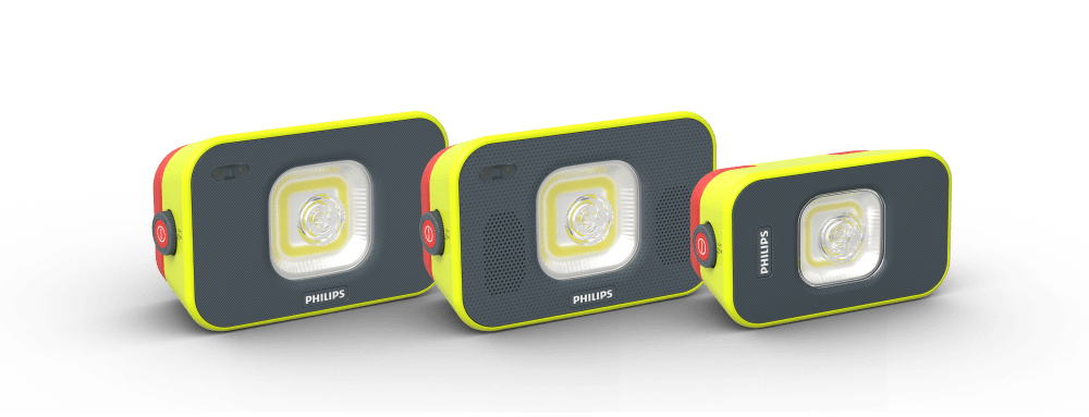 Whether lighting up a work site, temporarily replacing a wall lamp, or illuminating outdoor activities, the Philips Xperion 6000 Flood and Flood Audio lights are perfect for illuminating large, dark areas. Delivering an impressive 1000 lumens from just 10 Watts of power, their consistently bright light spreads in a  wide beam. If less light and longer battery life are needed, it’s easy to dim the lamp to just 100 lumens. The Philips Xperion 6000 Flood Mini offers a more compact way to get the job done and delivers an impressive 500 lumens with the same adjustable beam as the Flood.