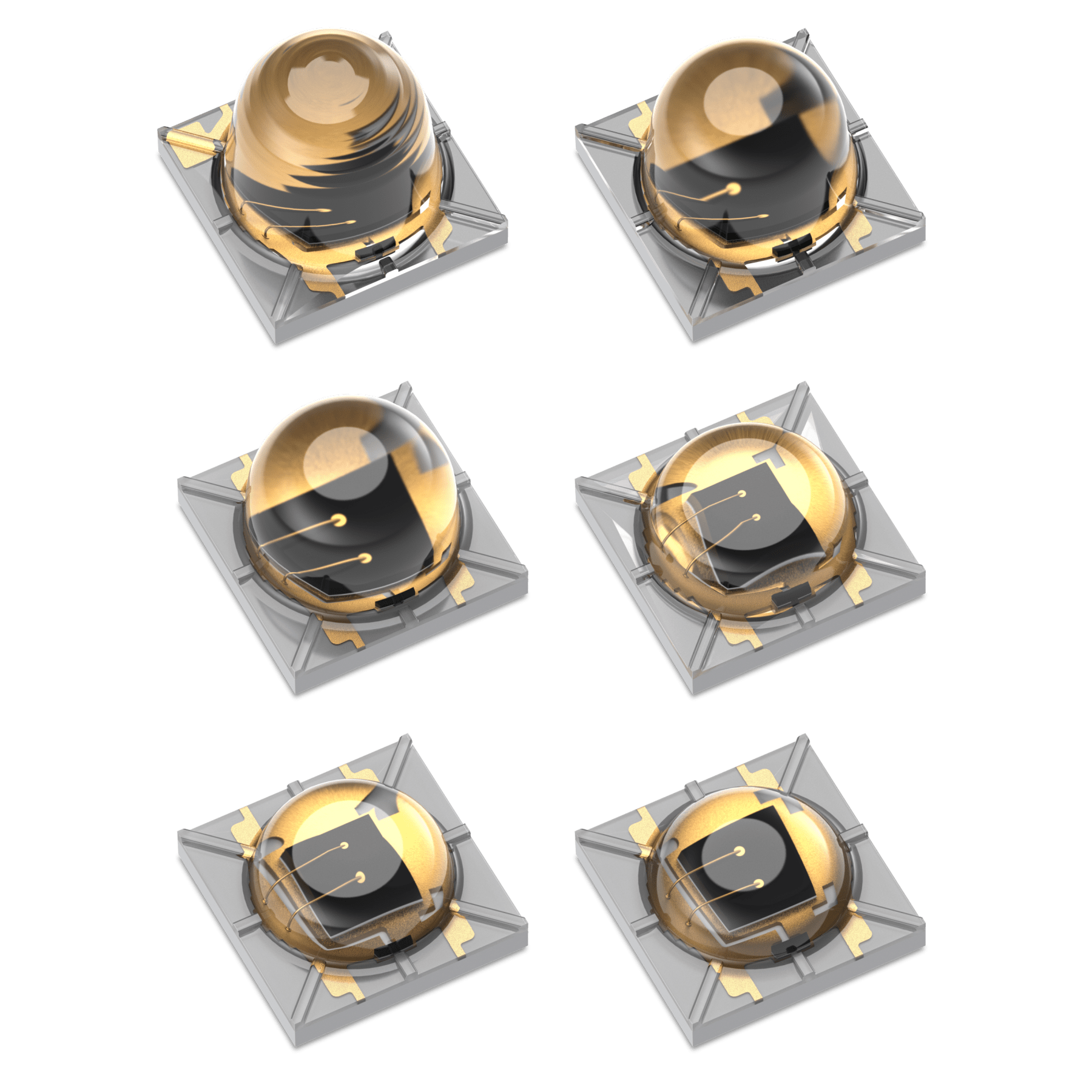 LUXEON IR Domed Line3.7mm x 3.7mm domed package delivers 5 emission patterns 50°, 60°, 90°, 150°, and 95 x 58°. 1350mW @ 850nm and 1450mW @ 940nm.