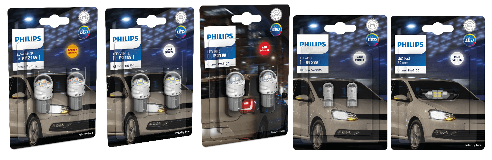 Whether reversing, stopping, or turning, drivers need to send a clear message about the intended movement of their vehicle to keep themselves and other road-users safe. Philips Ultinon Pro3100 LED signaling bulbs have the brightness to do exactly that. Their signature vibrant light stands out in daytime and darkness, whatever the weather, enabling early recognition and swifter reactions. The bulbs’ wide-angle, uniform illumination reveals more of the road when used in reversing or fog lights, and unlike incandescent lamps, they don’t need time to warm up. Instead, they produce light instantly when switched on. In festoon format, the Philips Ultinon Pro3100 brings bright, eye-friendly light to car interiors, glove compartments, and license plates.