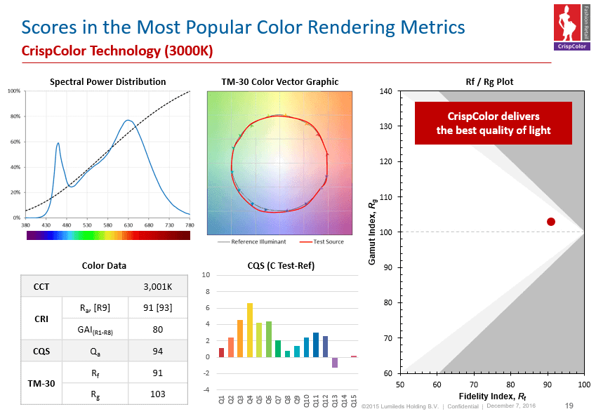 LUXEON CoB with CrispColor TechnologySpecial phosphor technology creates a higher gamut color rendering than existing solutions. A specific color point be low the Black Body Line makes colors pop and fabrics come to life.