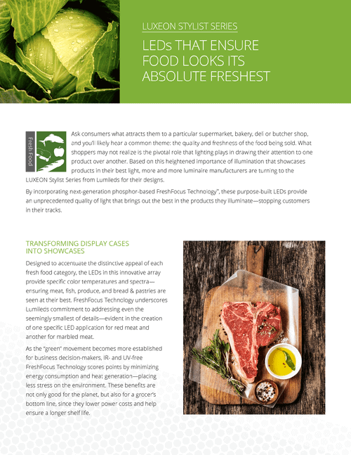 LUXEON CoB with FreshFocus TechnologyFreshFocus Technology creates the most impactful lighting by accentuating the appeal of a variety of fresh food areas such as supermarkets, delis, butcher shops and bakeries.